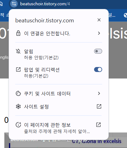 - 아래의 "방해가 되는 광고"를 차단(기본값) -> 허용 으로 변경